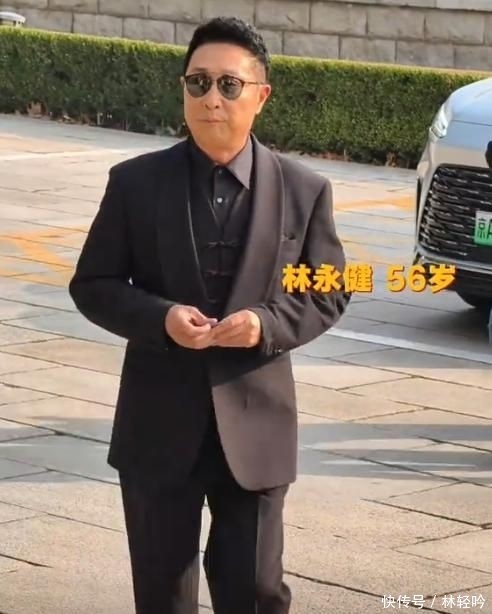 作为中国视协副主席,林永健身穿全黑套装出场——黑色西装搭配暗色衬衫,头顶微卷发型,配上一副墨镜,气场十足。